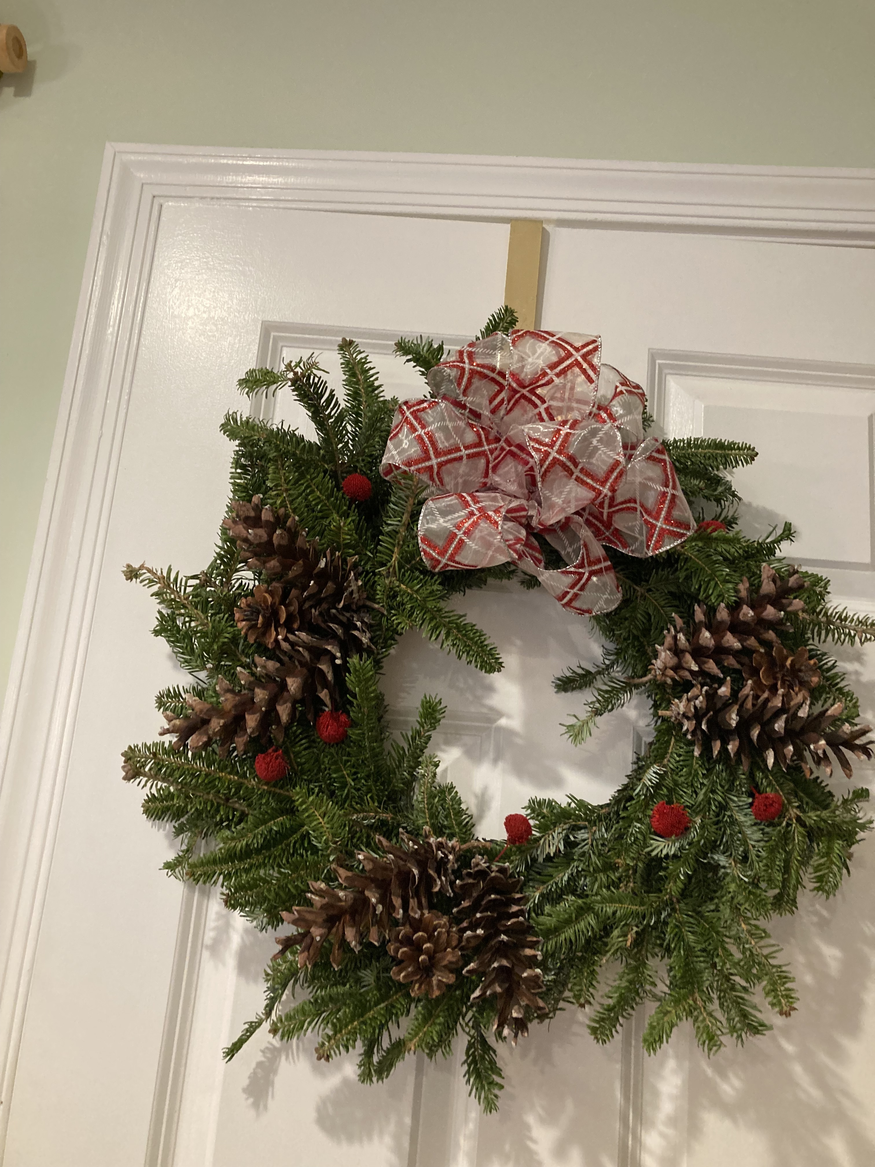 1. a fresh, plain (with no decorations on it, not artificial) holiday wreath from Home Depot or any garden store.